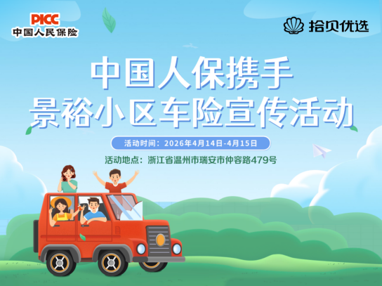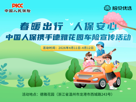 春暖出行,人保安心!中国人保将于2026年4月11日-2026年4月12日在龙港市泰源锦园举办一场车险宣传活动。